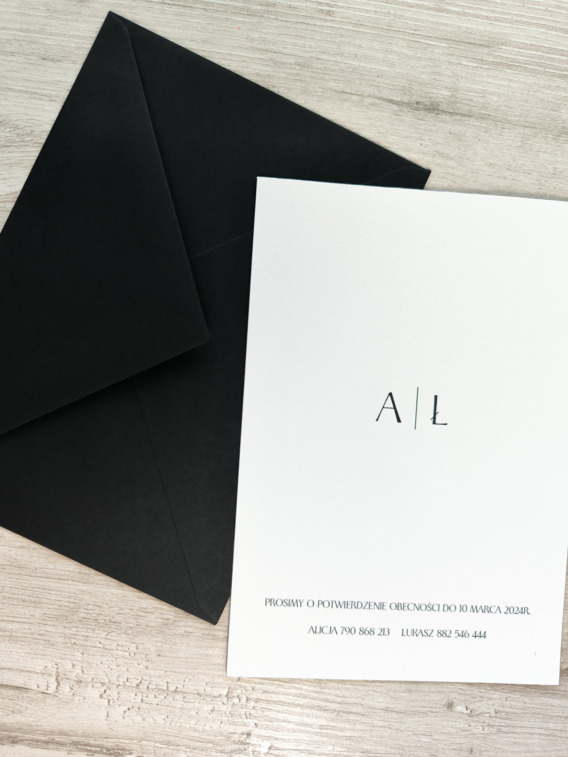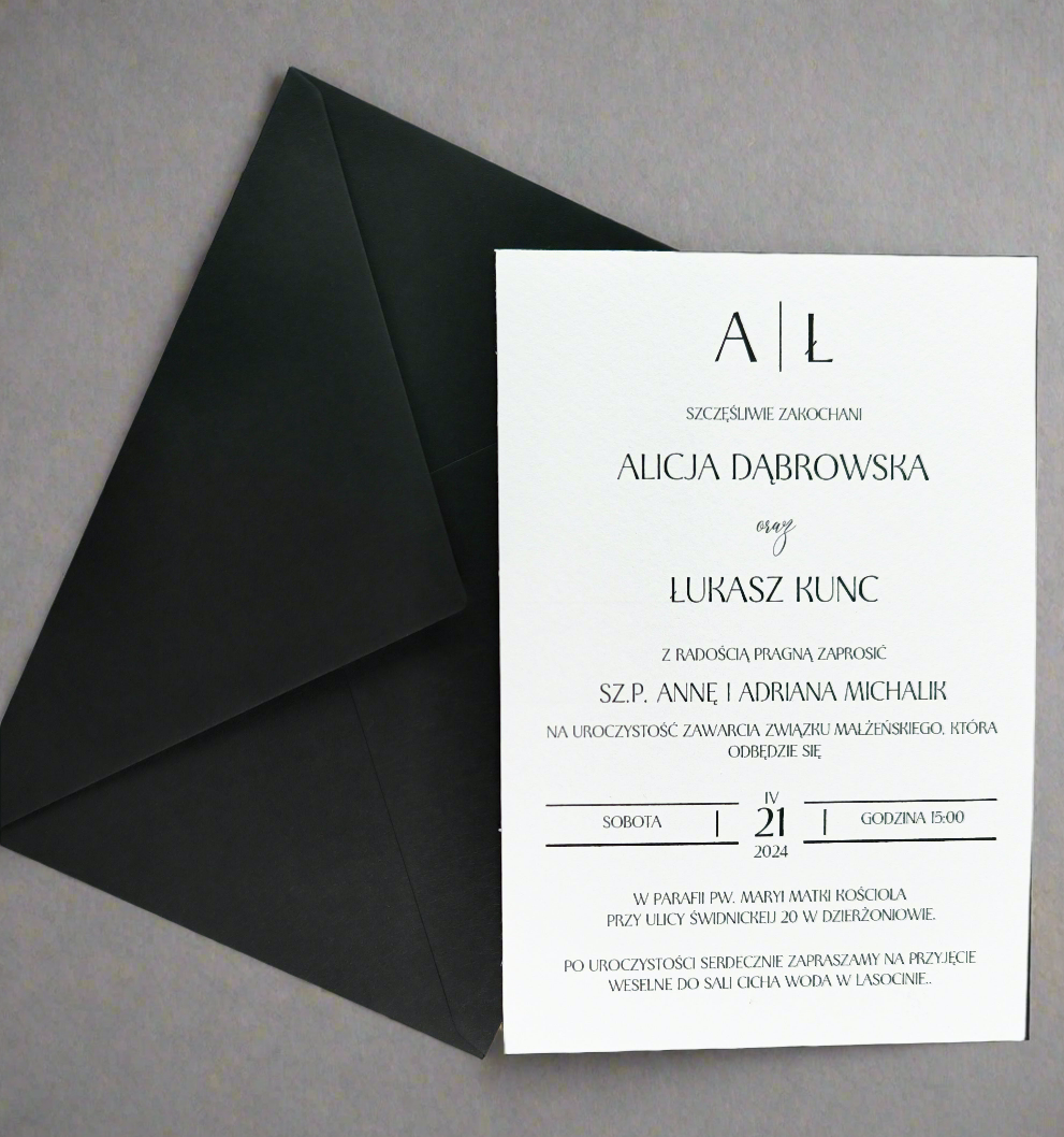 - Koperta w głębokiej czerni, dopasowana do zaproszenia